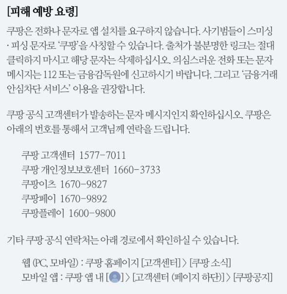 ① 쿠팡 사칭 전화·문자 100% 의심하기